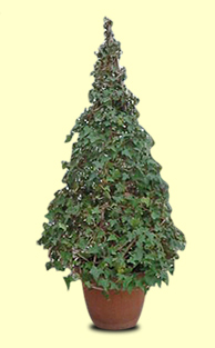 manufactured metal support and bamboo canes tied together in the form of a cone. They are used with Ivies of different heights: